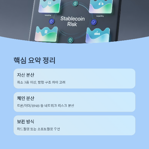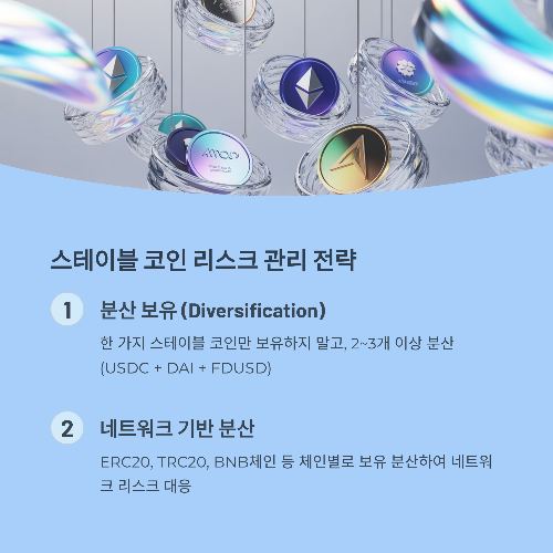- 한 가지 스테이블 코인만 보유하지 말고, 2~3개 이상 분산