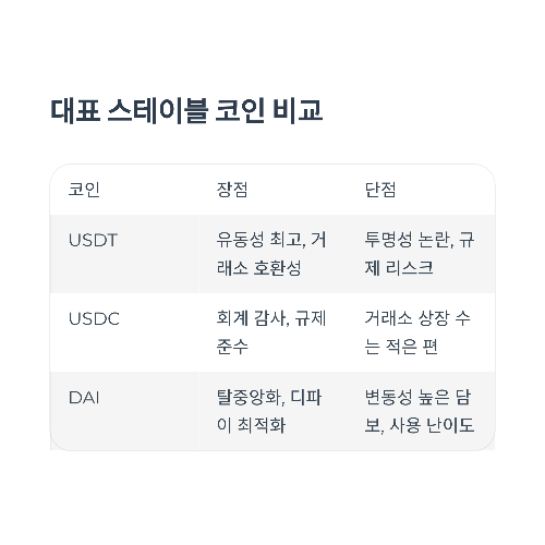 🔍 대표 스테이블 코인의 장단점 비교