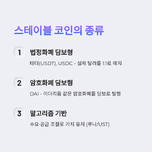 투자? 거래소 간 이동? 결제용? 목적에 맞는 스테이블 코인을 선택하세요. - 담보 구조를 꼭 확인하자