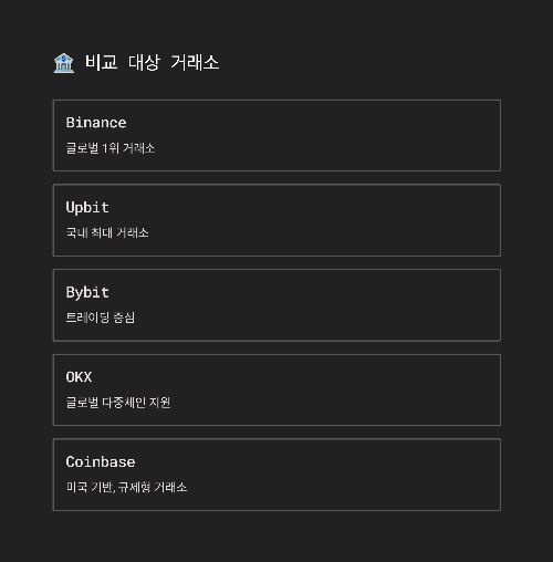 🏦 비교 대상 거래소