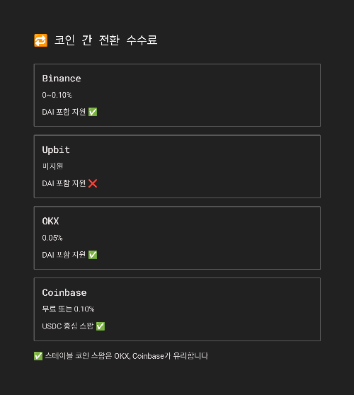 ✅ 추천: 스테이블 코인 스왑은 OKX, Coinbase가 유리