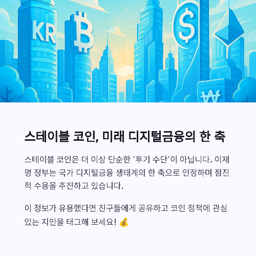 결론적으로, 이재명 정부는 스테이블 코인을 무조건 규제 대상이 아닌 ‘조건부 수용’의 시각에서 접근하고 있으며,