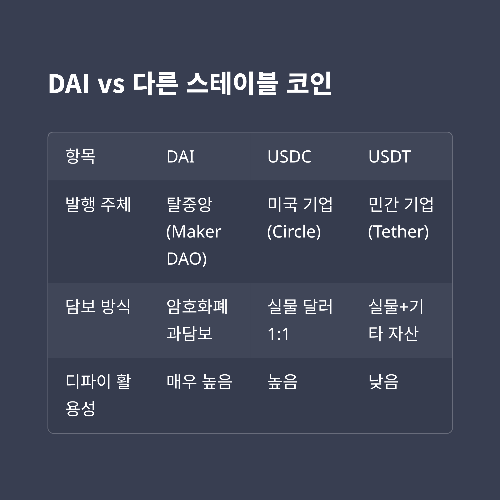 🔍 DAI vs 다른 스테이블 코인