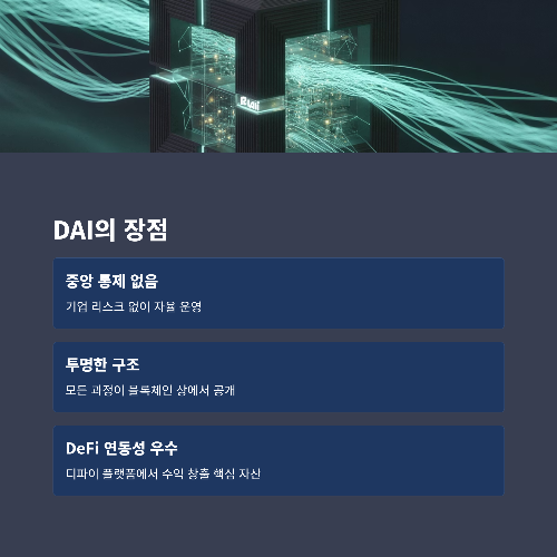 | DeFi 연동성 우수 | DAI는 디파이 플랫폼에서 수익 창출 핵심 자산 |