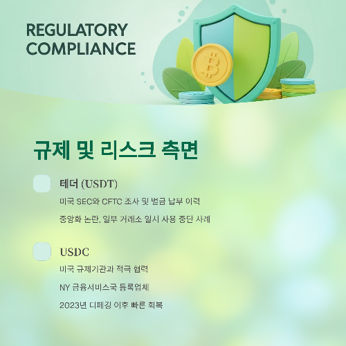 ✅ 결론: 규제 수용성은 USDC가 우위, 테더는 상대적으로 리스크 존재