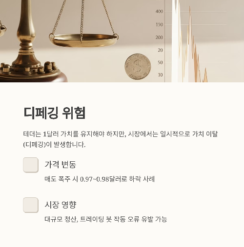 하지만 투명성, 규제, 디페깅, 시스템 리스크 측면에서는 분명한 단점도 존재합니다.